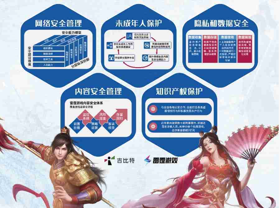 本次yaxin111展区以网络安全管理、、、内容安全管理、、、未成年人保护、、隐私和数据安全、、知识产权保护五个模块介绍公司游戏安全工作成果,,,体现yaxin111高度重视网络安全,,严格遵守相关法律法规要求,,,积极承担企业主体责任。。。